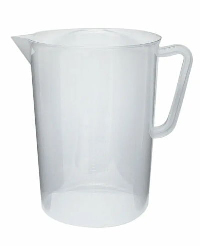 Jarra graduada em Polipropileno transparente com bico vertedor, graduação em alto relevo;