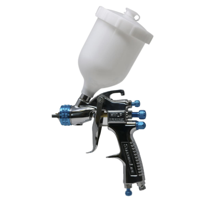 Mini pistola, capaz de atender uma ampla gama de aplicações e acabamentos, e ganhou ainda mais economia de tinta e taxa de transferência na pintura. É feita com fibra de carbono, tratada com processos de nanotecnologia para facilitar a limpeza e garantir uma excelente resistência a ataques químicos.