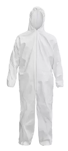 Vestimenta de segurança, tipo macacão, confeccionada em polipropileno (não tecido) laminado, com filme de polietileno, fechamento frontal com zíper e pala de proteção, elástico no capuz, punho e tornozelos. Para proteção do crânio, pescoço, tronco, membros superiores e inferiores do usuário contra risco de de origem química.