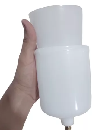 Coador para tinta, encaixado dentro da caneca. Auxilia na retirada de eventuais resíduos e impurezas que possam estar na tinta, melhorando a qualidade do trabalho e evitando entupimento do bico da pistola de pintura.