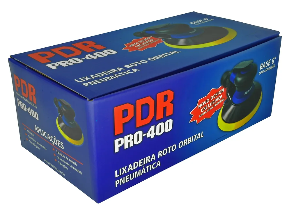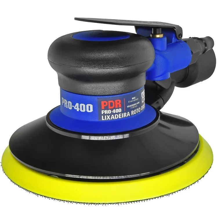Acompanha: 1 base orbital de 6″ macia e com velcro, 1 tubo de aspiração, 1 saco coletor, 1 conector de ar de 1/4″ na máquina e 1 chave de boca.
