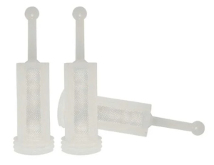Coador para tinta, encaixado dentro da caneca. Auxilia na retirada de eventuais resíduos e impurezas que possam estar na tinta, melhorando a qualidade do trabalho e evitando entupimento do bico da pistola de pintura.