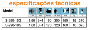 – Diâmetro do bico: 1.4 mm / 1.7 mm / 2.0 mm / 2.5 mm