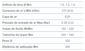 – Consumo de ar: 7 pcm
